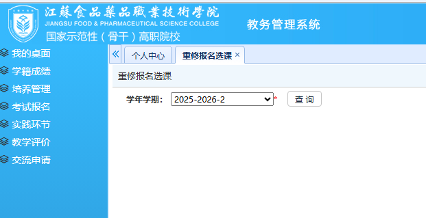 步骤4进入重修报名选课,选择2025-2026-2学期,点击查询