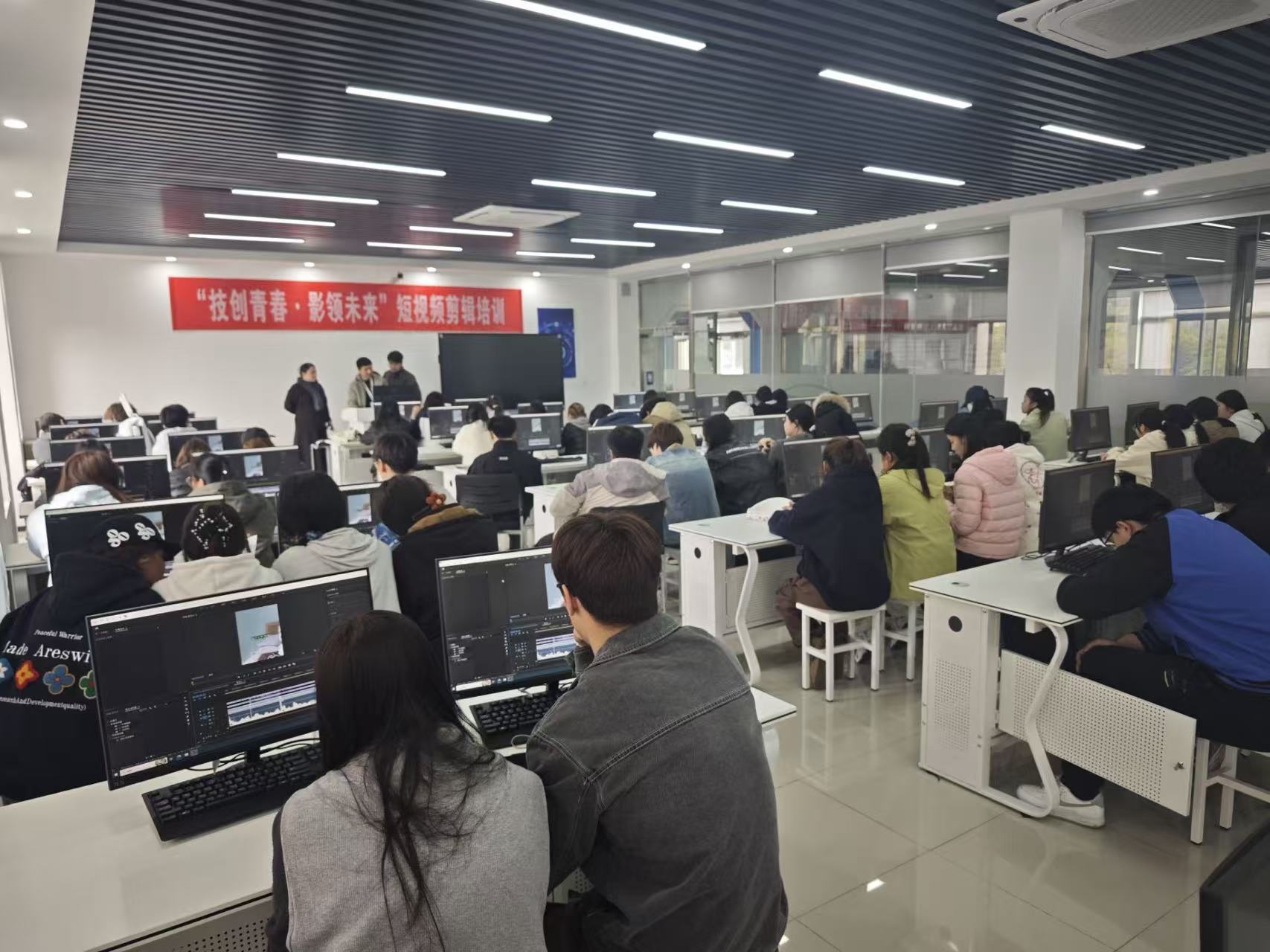 短视频剪辑实操培训阶段,淮安福粒跨境有限公司资深培训讲师在计算机实训中心J15、J16开展培训。该培训将行业实操标准与专业技能直接传递给学生,切实解决实操难点。